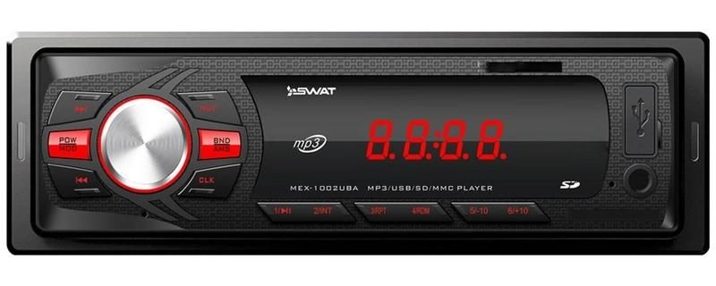 SWAT MEX-1002UBA поддерживает форматы MP3, WMA, WAV, что позволяет вам слушать любимые композиции в высоком качестве звука. Кроме того, данная модель оснащена встроенным микрофоном для громкой связи во время разговоров по телефону без использования рук.