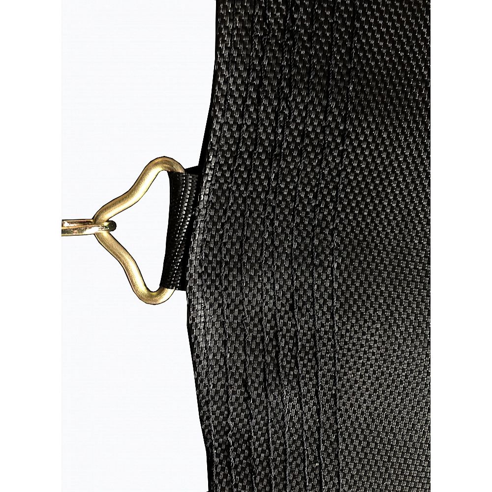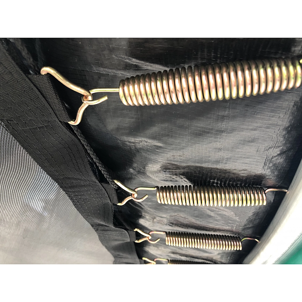 Эластичное и устойчивое к UV-воздействию полотно изготовлено из полипропилена, что делает его не только безопасным, но и долговечным. Специальная конструкция пружин с треугольными карабинами предотвращает разрывы в местах крепления.