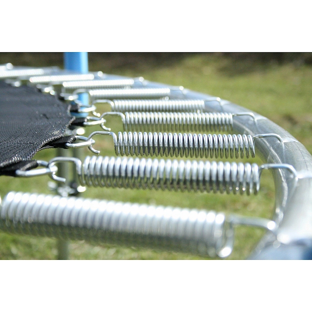 Особенное внимание уделено пружинам — каждая из 48 пружин разработана для надёжного распределения нагрузки, что повышает срок службы батута до 10 лет для стальных элементов и 5 лет для полотна. Прыжковое полотно, изготовленное из высококачественного полипропилена, не только отлично амортизирует, но и защищено от ультрафиолетового излучения, что гарантирует отсутствие выгорания даже в солнечные дни.