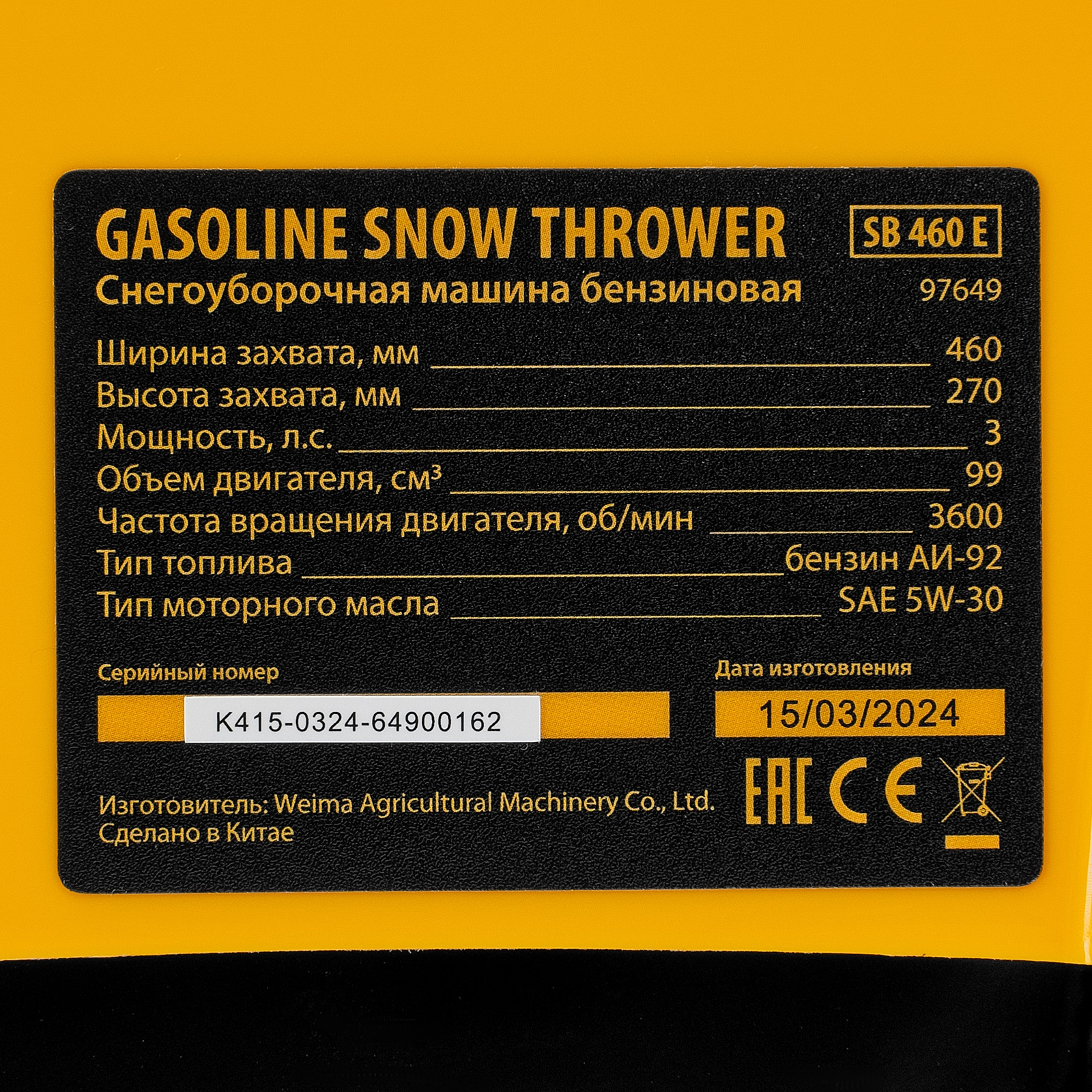 Бензиновая снегоуборочная машина DENZEL SB 460 E - Характеристики