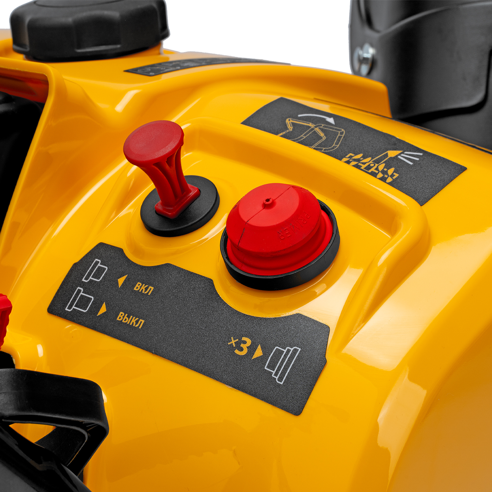 - Удобство в использовании: Эргономичная рукоятка поворота желоба и интуитивно понятные ручки управления делают процесс уборки снега легким и комфортным.