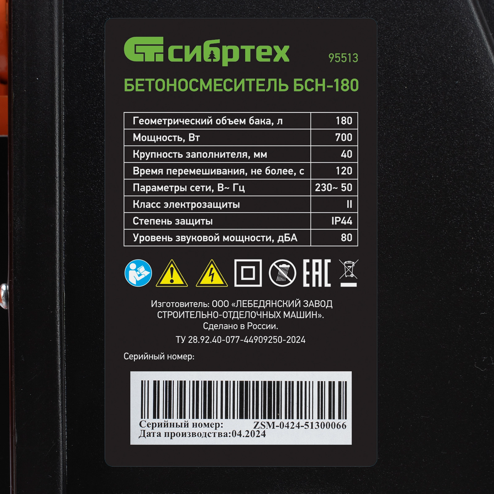 Бетоносмеситель СИБРТЕХ БСН-180 - Характеристики