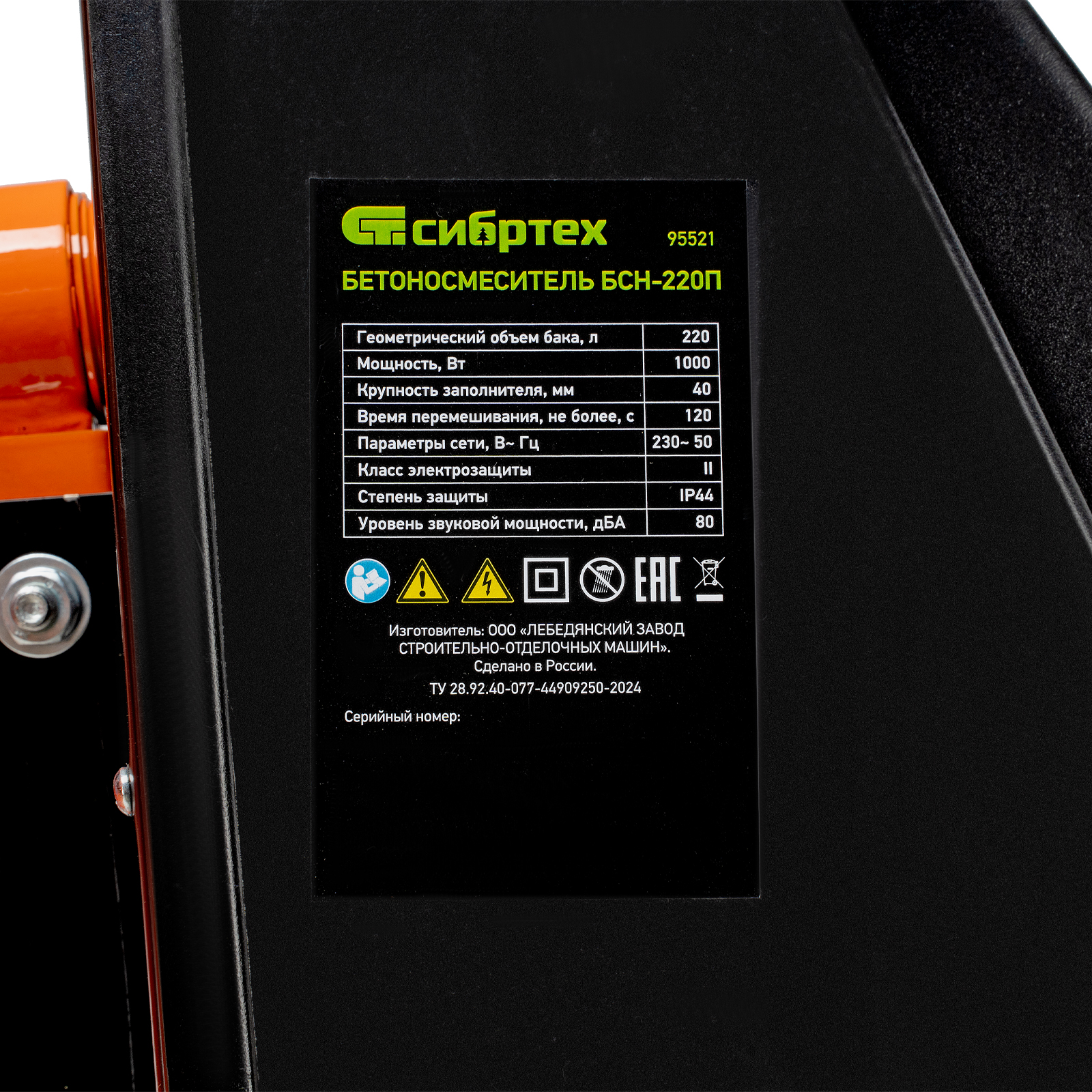 Бетоносмеситель СИБРТЕХ БСН-220П - Характеристики