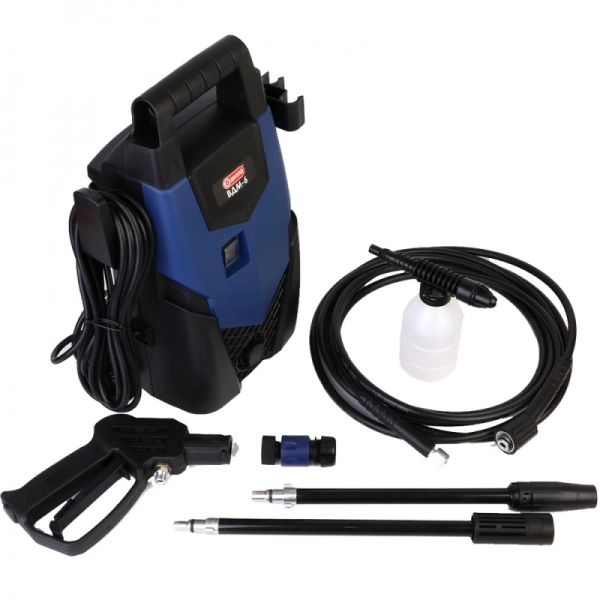 В основе конструкции — алюминиевая помпа, устойчивая к коррозии и рассчитанная на долгий срок службы. Коллекторный двигатель мощностью 1850 Вт с воздушным охлаждением не боится интенсивной работы: техника не перегревается даже при длительных сессиях. Встроенная система «Тотал-стоп» автоматически отключает устройство при отсутствии давления, что защищает внутренние механизмы от износа.