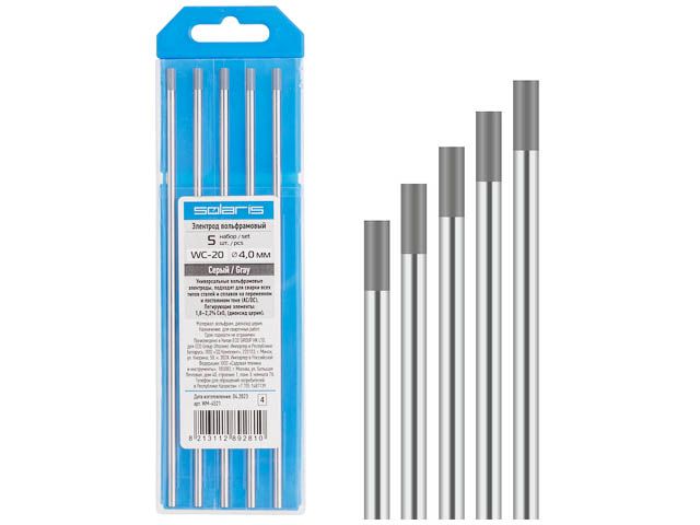 Электрод вольфрамовый серый WC-20, Ф 4,0 мм (набор 5 шт) SOLARIS Мы являемся официальными диллерами компании SOLARIS