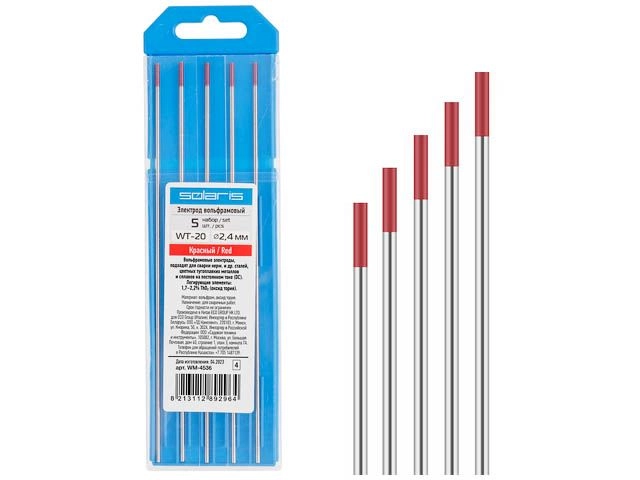 Электрод вольфрамовый красный WT-20, Ф 2,4 мм (набор 5 шт) SOLARIS Мы являемся официальными диллерами компании SOLARIS