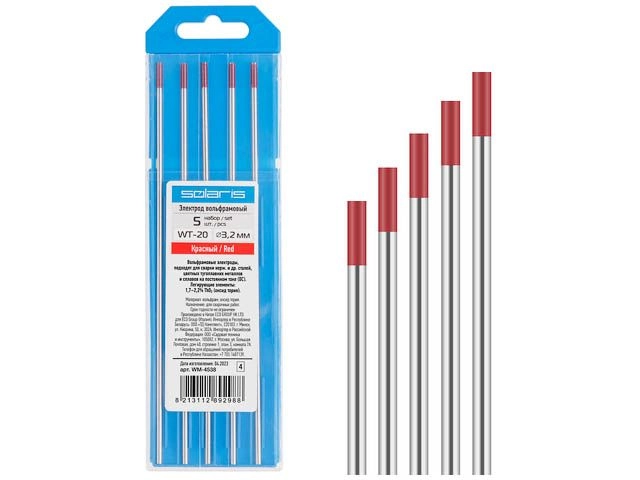 Электрод вольфрамовый красный WT-20, Ф 3,2 мм (набор 5 шт) SOLARIS Мы являемся официальными диллерами компании SOLARIS