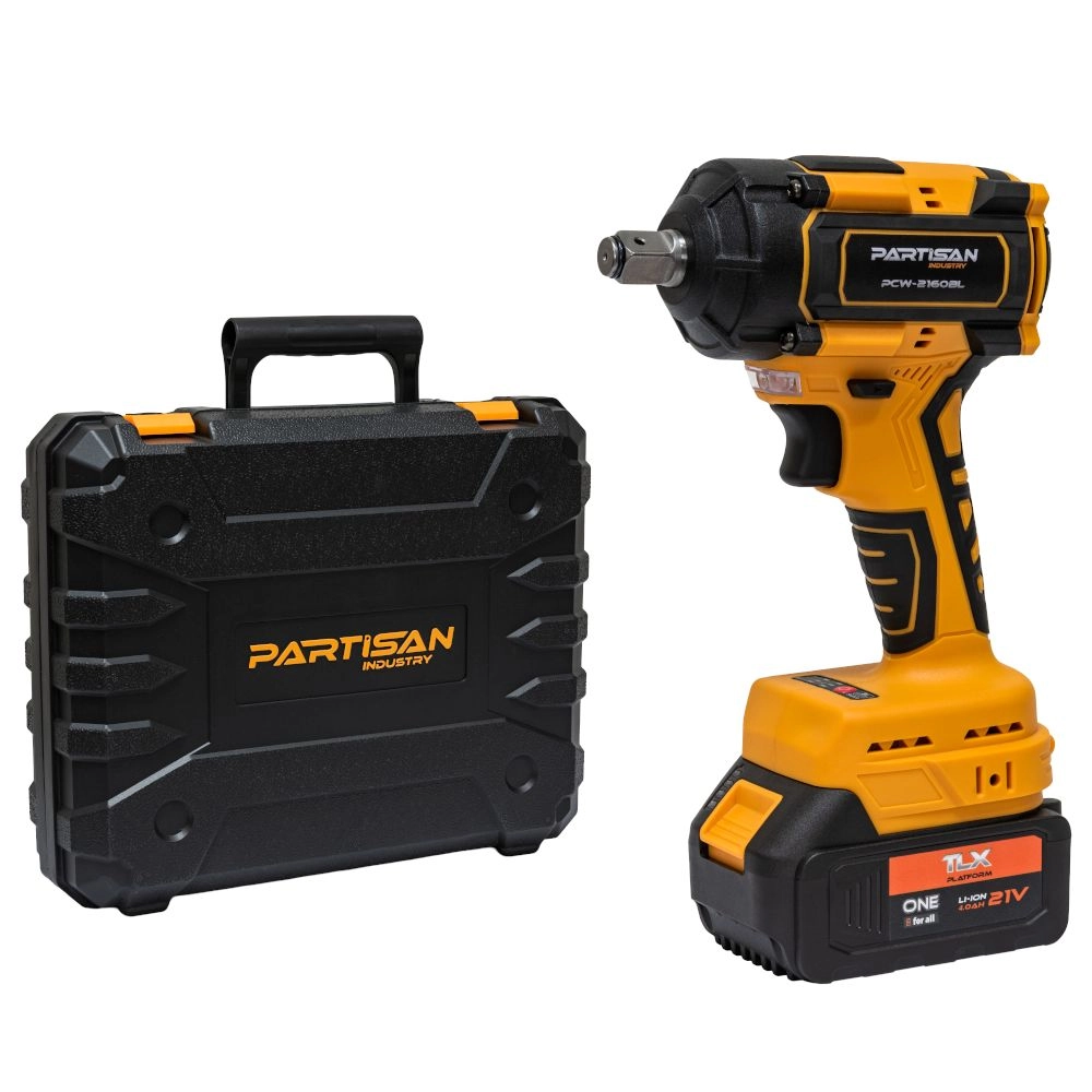 PARTISAN PCW-2160BL комплектуется всем необходимым: аккумулятор, зарядное устройство, ударная головка и прочный кейс для хранения и транспортировки. Эргономичная рукоятка с нескользящим покрытием обеспечивает уверенный хват. Четырёхгранный патрон 1/2 подходит для большинства профессиональных и бытовых задач.