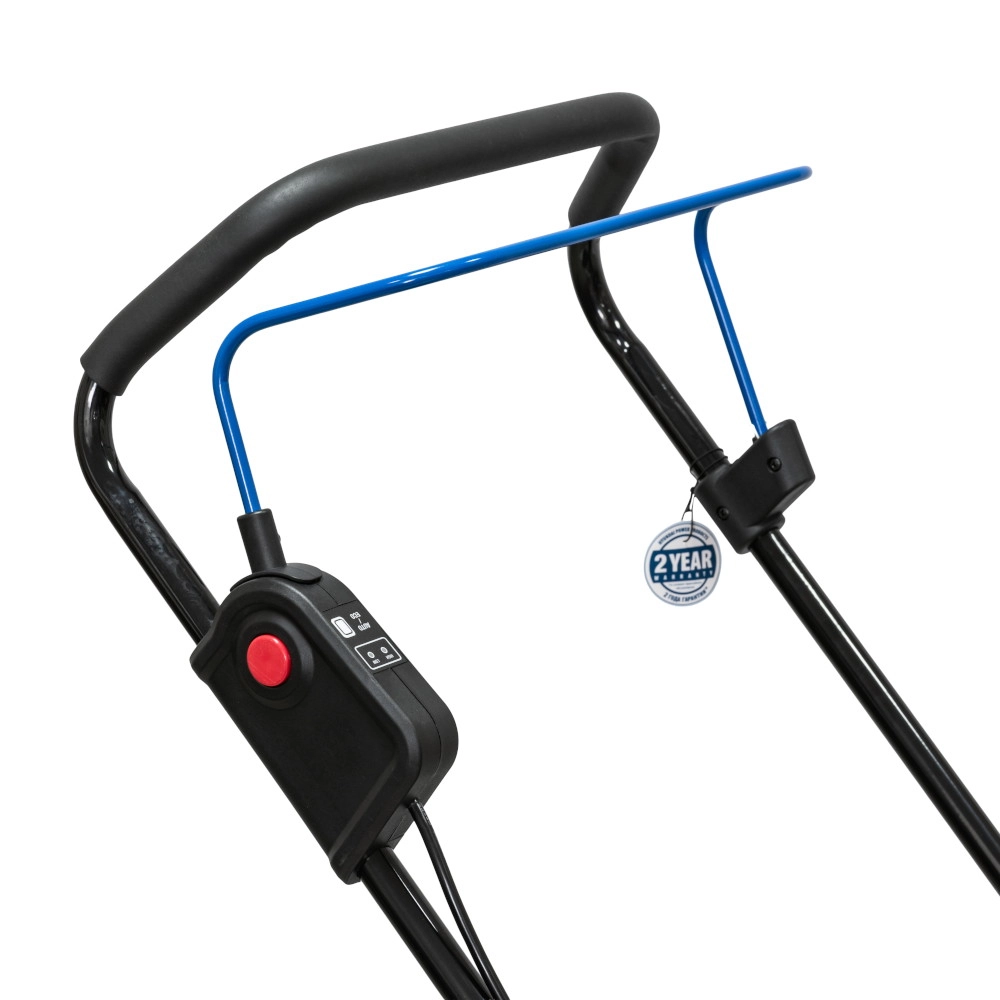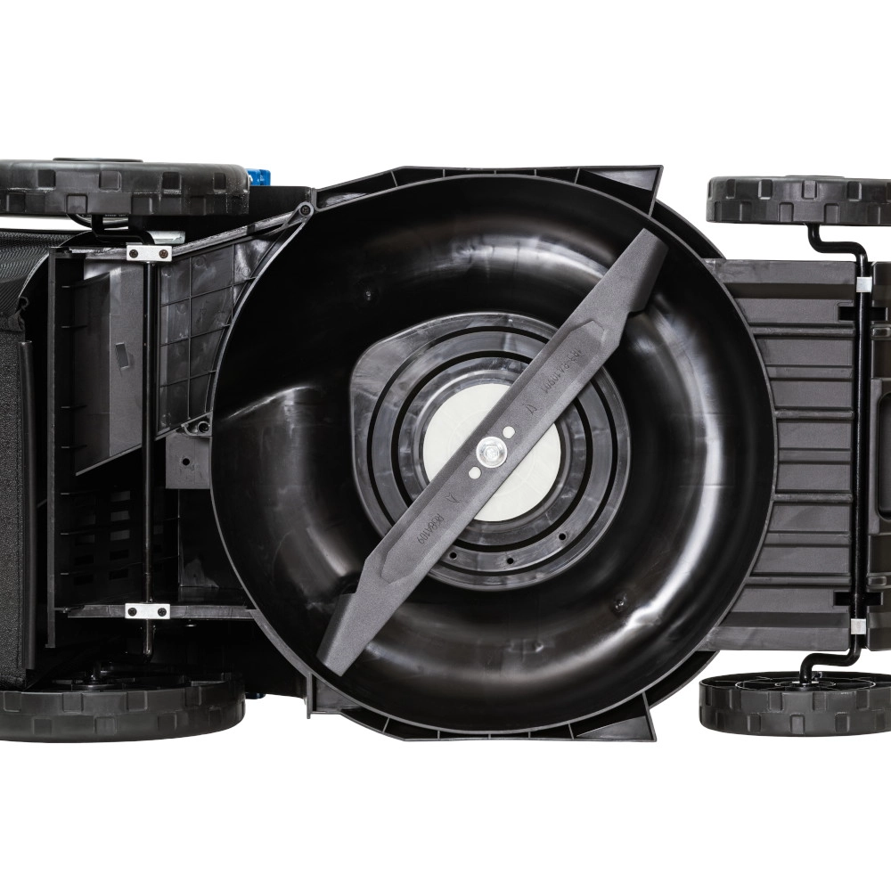 Ширина скашивания в 430 мм ускоряет процесс, а комбинированный травосборник на 45 литров из ткани и пластика сокращает время на очистку. Регулировка высоты среза от 25 до 75 мм подстраивается под любые требования — от аккуратного газона до более естественного вида. Эргономичная рукоятка и интуитивное управление делают работу лёгкой и приятной.