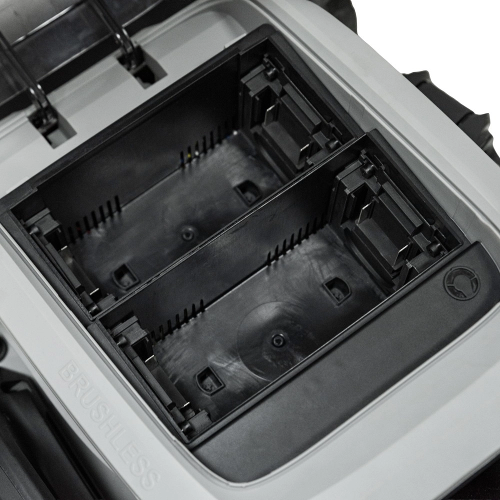 Корпус с классом защиты IPX4 не боится дождя и брызг, что расширяет возможности использования в любых погодных условиях. Уровень шума не превышает 96 дБ — это значит, что работа не превратится в источник раздражения для вас и соседей. Вес без аккумуляторов — 30,85 кг — оптимален для устойчивости и удобства управления, а сменные картриджные аккумуляторы ёмкостью 4,0 А·ч и силой тока 4 А обеспечивают мощность и длительность работы.