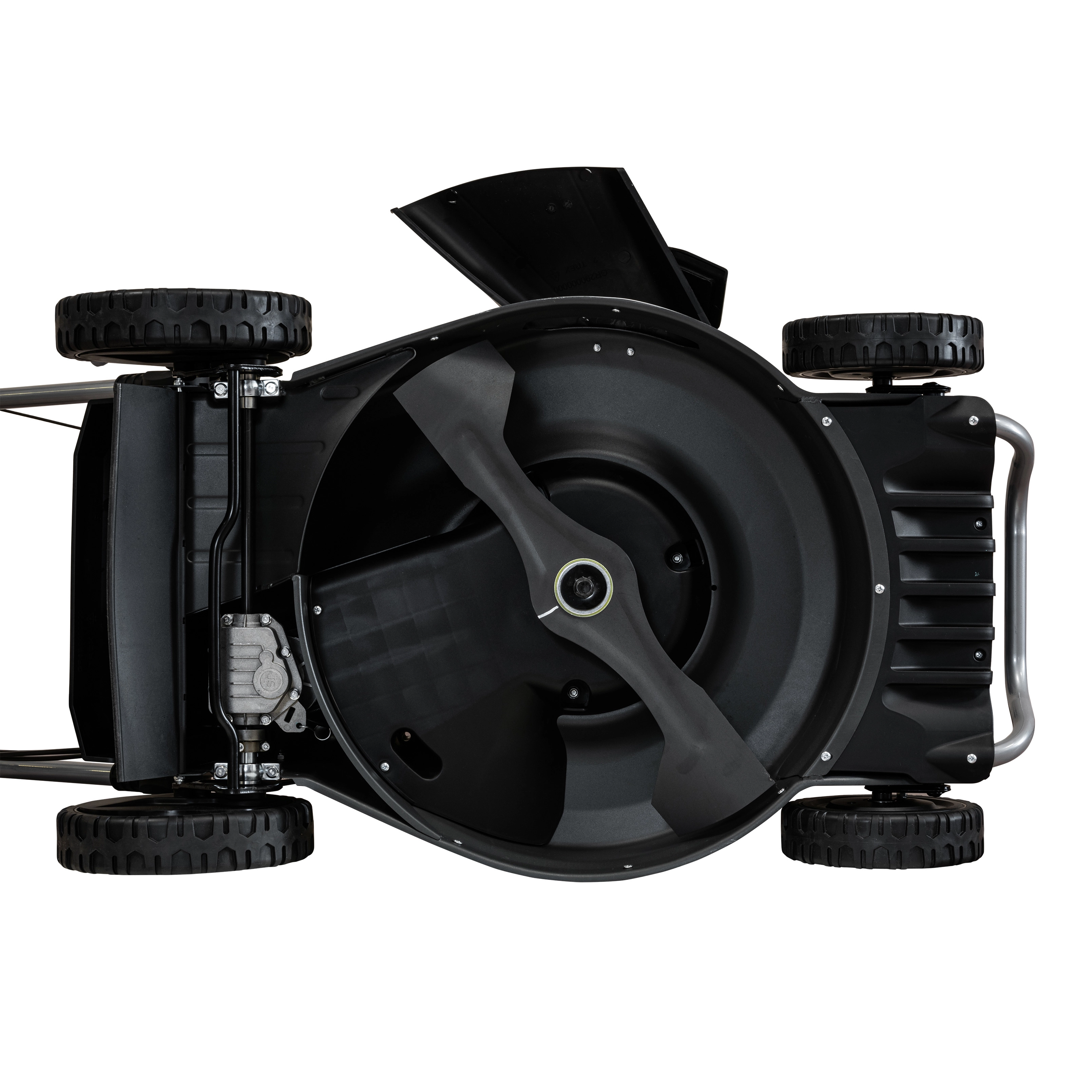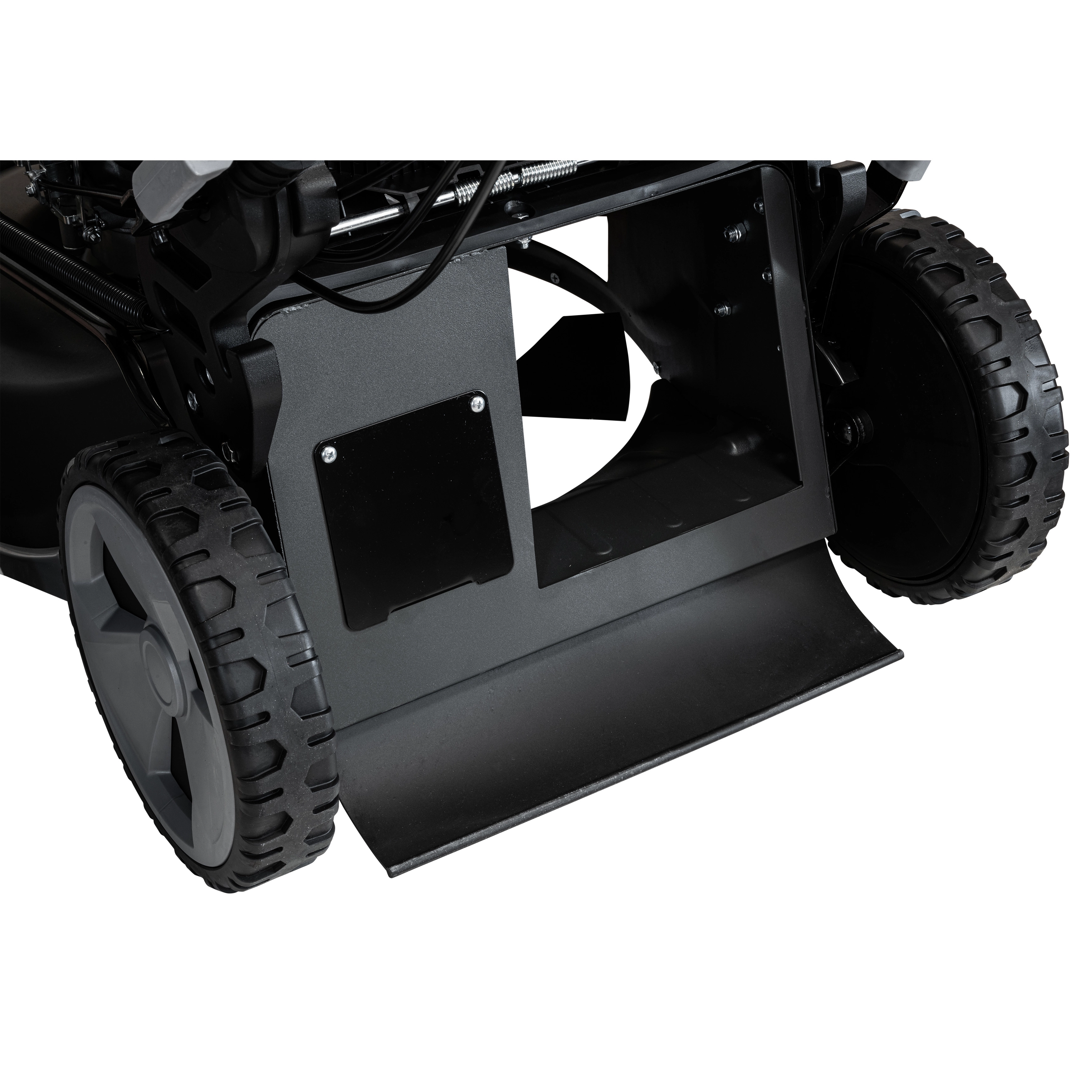 Корпус из стали — гарантия прочности и устойчивости к случайным ударам и царапинам. Колеса диаметром 203 мм спереди и 254 мм сзади обеспечивают уверенное движение по неровной поверхности, а привод облегчает управление, снижая нагрузку на оператора. Функция мульчирования превращает срезанную траву в натуральное удобрение, что помогает поддерживать здоровье почвы без дополнительных затрат.