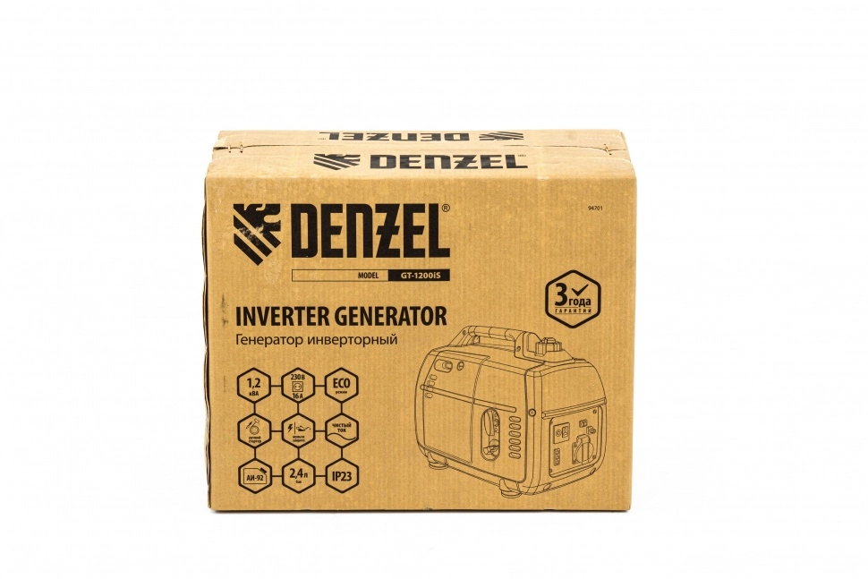 Этот генератор не только эффективен, но и безопасен: степень защиты IP23 обеспечивает защиту от влаги и пыли. С одним выходом на 230 В и дополнительным выходом 12 В, он способен удовлетворить разнообразные потребности. Выбирая DENZEL GT-1200iS, вы получаете не просто генератор, а надежного партнера для любых приключений.