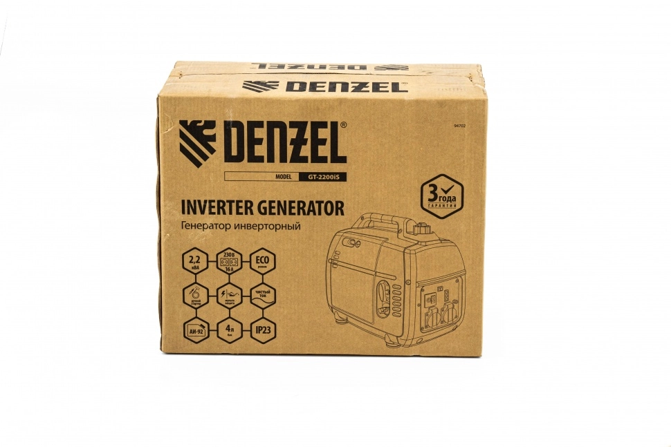 Генератор DENZEL GT-2200iS имеет степень защиты IP23, что обеспечивает надежную работу даже в неблагоприятных погодных условиях. Вы получите 3 года гарантии, что подтверждает высокое качество и надежность этого продукта. Не упустите возможность сделать свою жизнь более комфортной и независимой с генератором, который сочетает в себе мощность, экономичность и удобство!