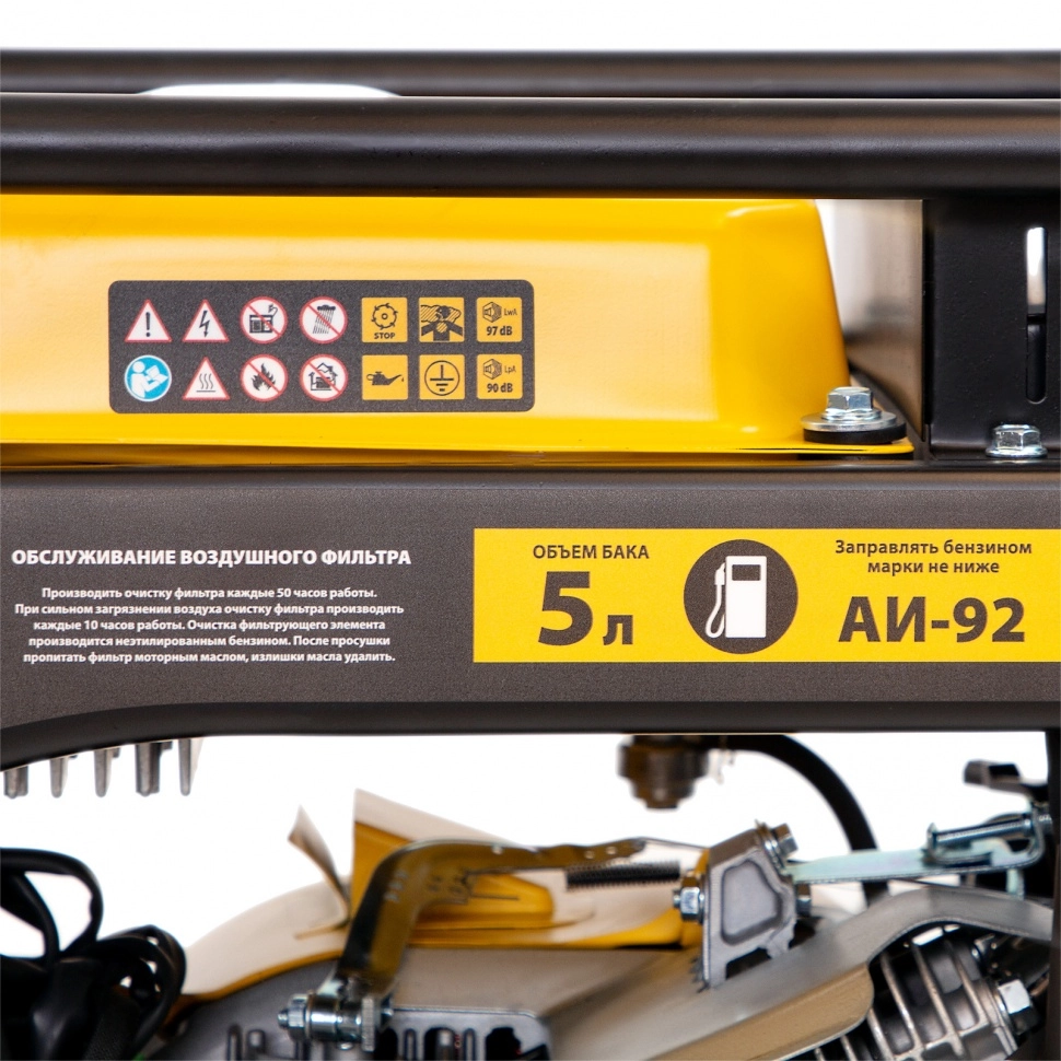 Этот генератор отличается высоким качеством исполнения: медные обмотки альтернатора гарантируют долговечность и эффективность работы. Двигатель объемом 212 см³ с 4-тактным циклом обеспечивает экономичный расход топлива — всего 1 литр в час при максимальной нагрузке.