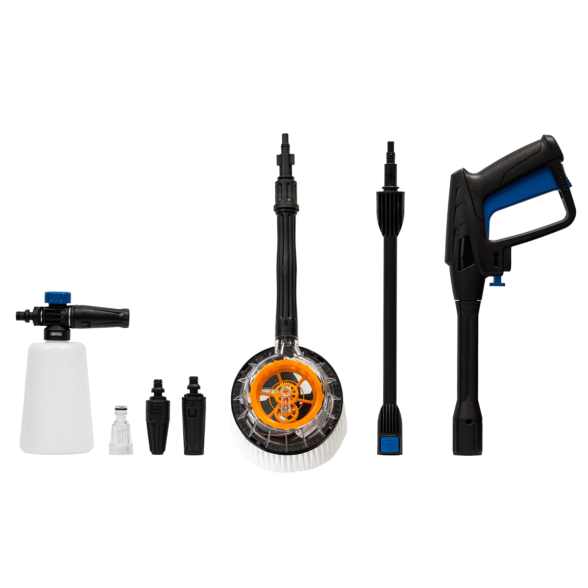 - Удобство использования: Длина шланга в 9 метров и кабеля в 5 метров обеспечивают свободу передвижения, а функция всасывания воды позволяет использовать мойку даже в условиях отсутствия водопровода.