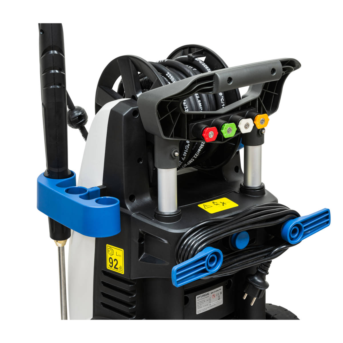 Герметичность конструкции подтверждает IPX5, что означает защиту от водяных брызг, а класс безопасности Class 2 обеспечивает дополнительный уровень защиты. В комплекте с мойкой вы получите пистолет-распылитель и армированный шланг с катушкой, что делает использование устройства еще более удобным.