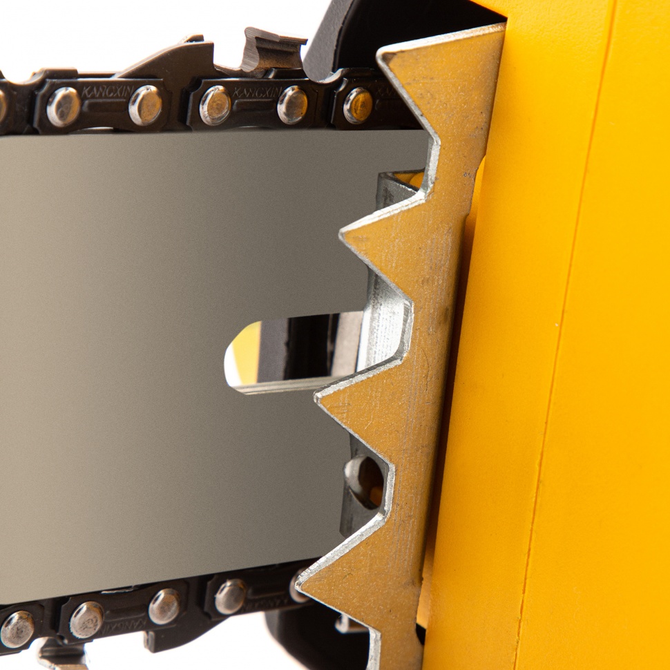 В комплекте вы найдете все необходимое: шину длиной 400 мм, цепь с 57 звеньями и чехол для шины, что гарантирует долговечность и безопасность хранения. Бесключевая регулировка натяжения цепи позволяет быстро и без лишних усилий настраивать инструмент под ваши нужды.