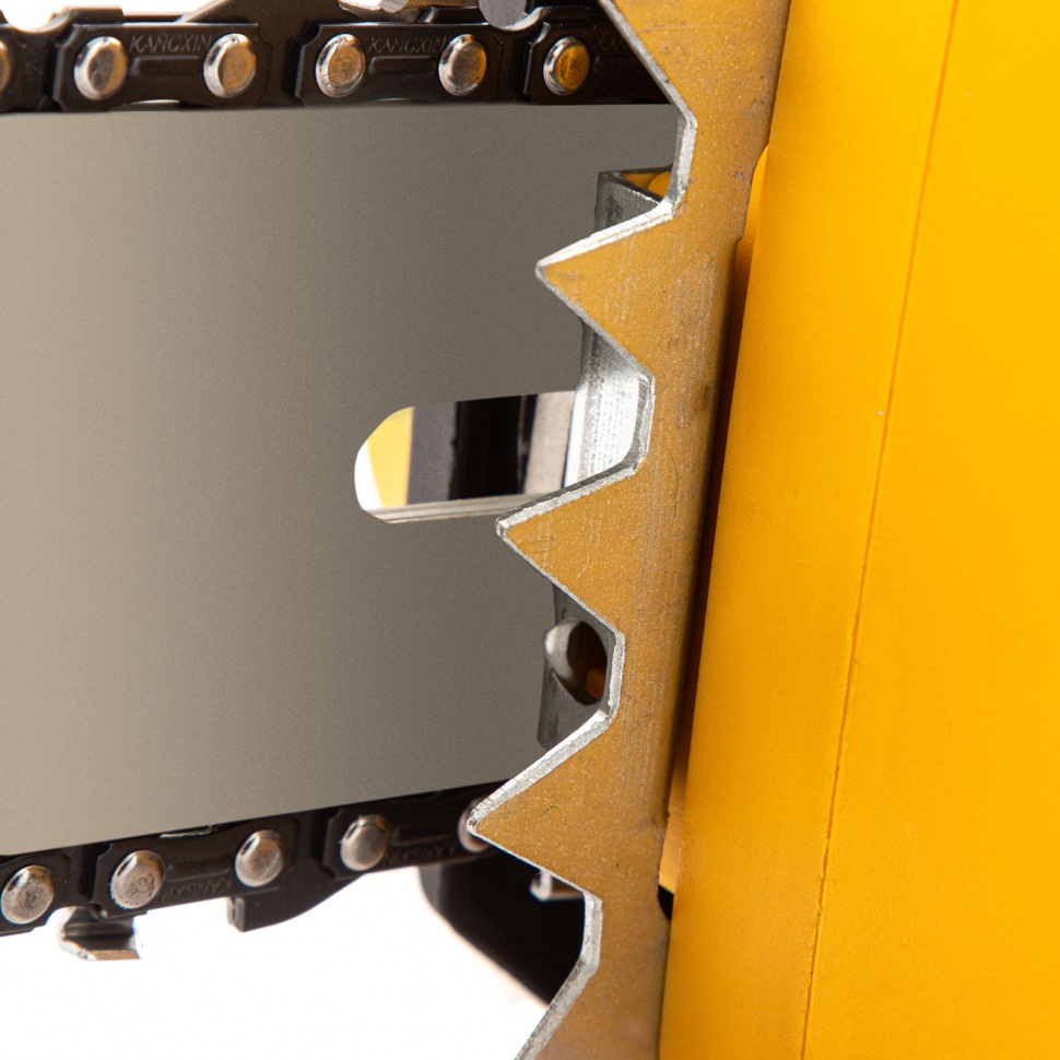 Вес всего 4,97 кг делает инструмент легким и удобным в использовании. Вы не устанете даже при длительной работе, а бесключевая регулировка натяжения цепи позволит быстро и без лишних усилий настроить инструмент под свои нужды. Длина шины в 400 мм и 57 звеньев цепи обеспечивают отличную производительность и точность реза.