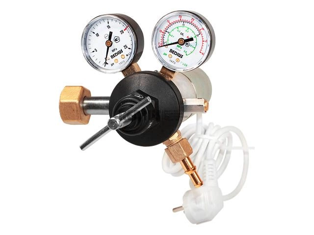 Регулятор расхода баллонный одноступенчатый предназначен для понижения и регулирования давления углекислого газа или аргона, поступающего из баллона, и автоматического поддержания постоянного рабочего расхода газа на выходе регулятора в ходе проведения работ. Подогреватель используется для предотвращения замерзания механизмов редуктора при больших расходах газа или при низких температурах окружающей среды. Подогрев осуществляется за счет теплообмена между газом и горячими стенками корпуса подогревателя.