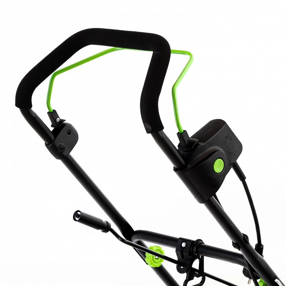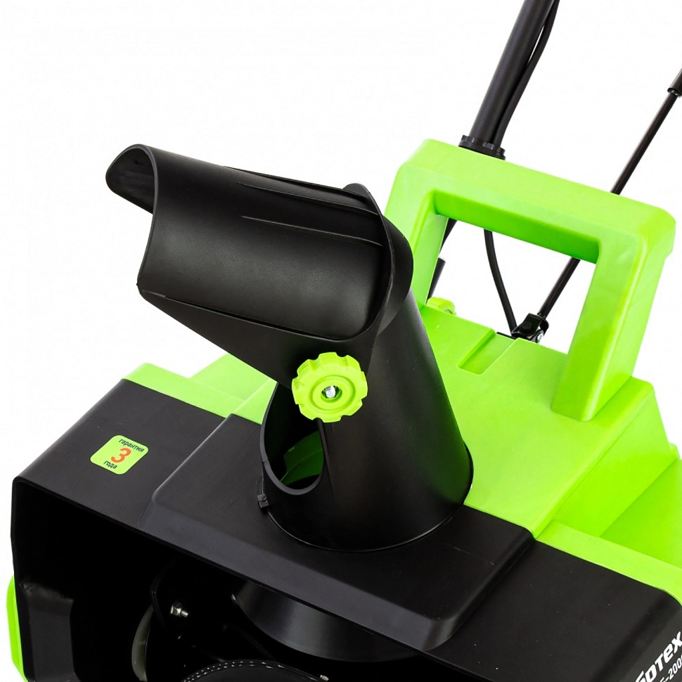 Удобство использования: Эргономичный дизайн и легкая сборка делают эксплуатацию машины простой и комфортной. В комплекте вы найдете все необходимые элементы, включая верхнюю рукоятку и дефлектор для управления направлением выброса снега.