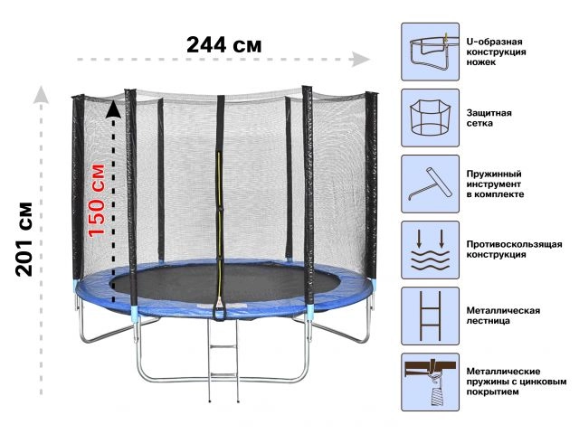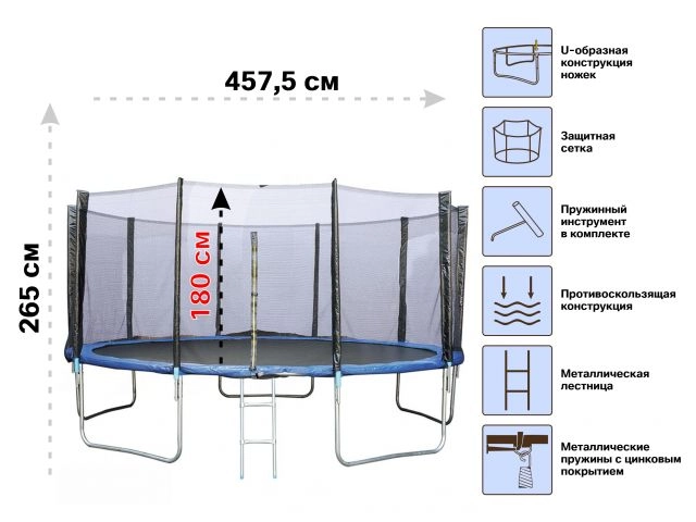 Погрузитесь в мир активного отдыха с батутом ARIZONE, который станет идеальным спутником для подростков старше 14 лет. Размеры 457.5х85 см обеспечивают достаточно пространства для прыжков и акробатиче..