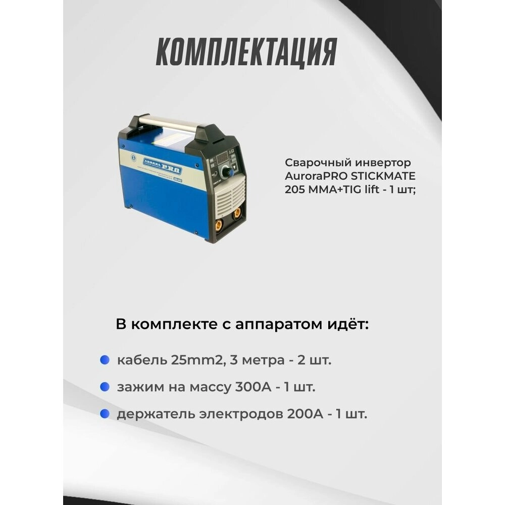 Приобретая Aurora PRO STICKMATE 205, вы получаете не просто сварочный аппарат, а полноценный инструмент для качественной и быстрой работы, который станет вашим надежным партнером на многих проектах.
