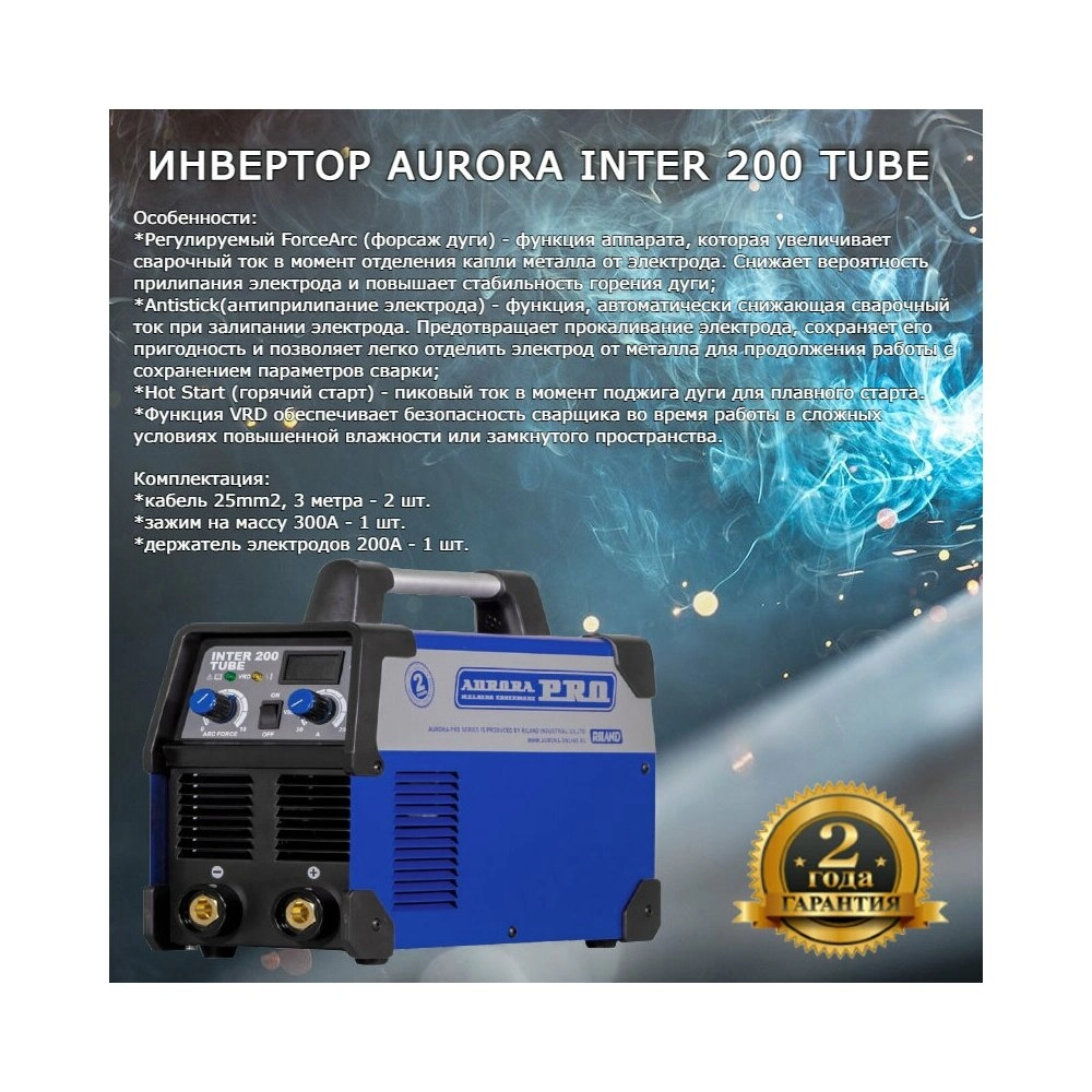 Компактные размеры (402х160х300 мм) и вес всего 10.58 кг делают его удобным для транспортировки и работы в стеснённых условиях. С поставкой в комплекте идут прочные кабели и аксессуары, что позволяет приступить к работе сразу после распаковки. С гарантией 24 месяца от производителя вы можете быть уверены в качестве и надежности устройства. Aurora PRO INTER 200 TUBE — это не просто сварочный аппарат, это целый инструмент для творчества и высокой производительности в руках каждого мастера!