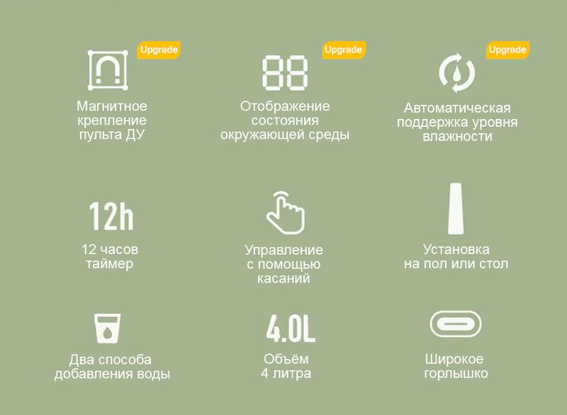 | Индикация | влажности, времени работы до выключения, отсутствия воды, уровня выхода пара |