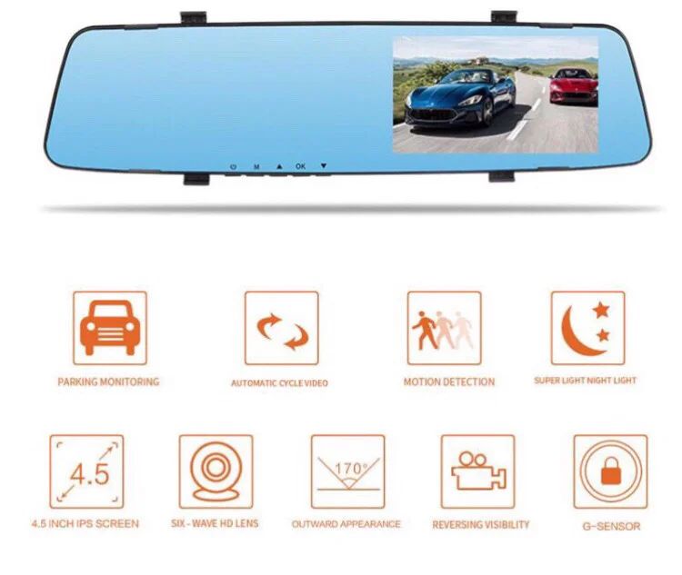 Видеорегистратор в виде зеркала заключен в корпус из прочного глянцевого пластика, а все разъемы расположены на верхней части гаджета, что очень удобно. Устройство легко настраивается при помощи удобных и понятных меню, и разобраться с управлением может даже новичок.