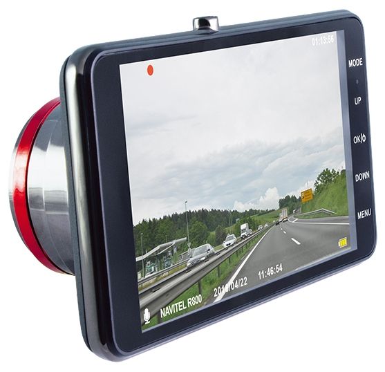 NAVITEL R800 -видеорегистратор в стильном металлическом корпусе, который надежно крепится на лобовое стекло автомобиля при помощи штатного кронштейна с эргономичным дизайном.